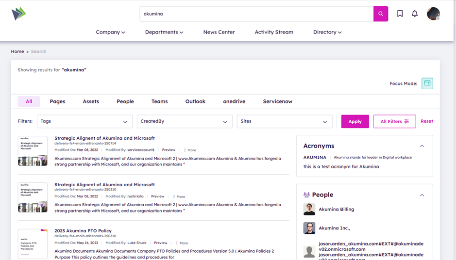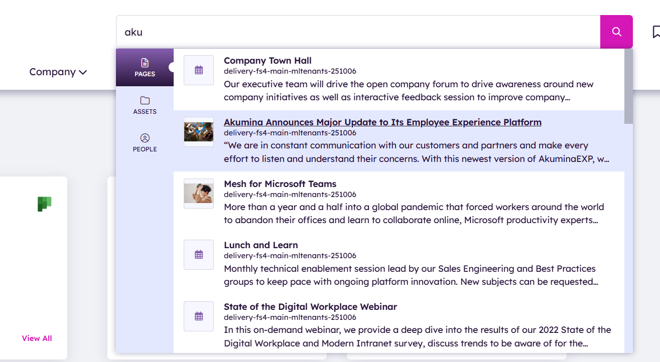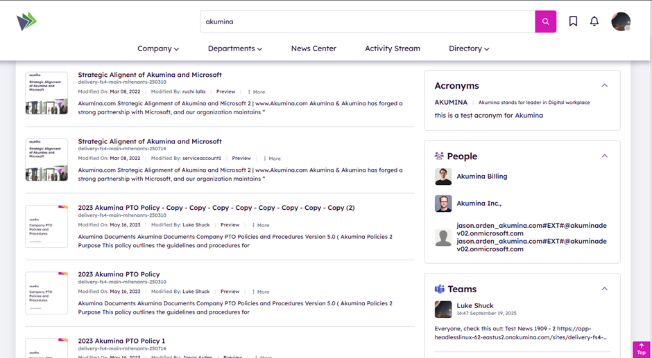 Akumina 6.4 delivers a smarter, more intuitive search experience that empowers users to find content faster and with greater precision—across all areas of the digital workplace.