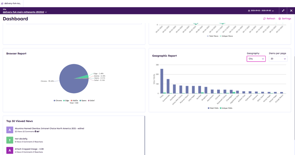 The Geographic Report widget in the Voice Analytics dashboard, which previously displayed user login data by country, has been enhanced to include city-level filtering. This provides more granular insights into platform usage across geographic regions.