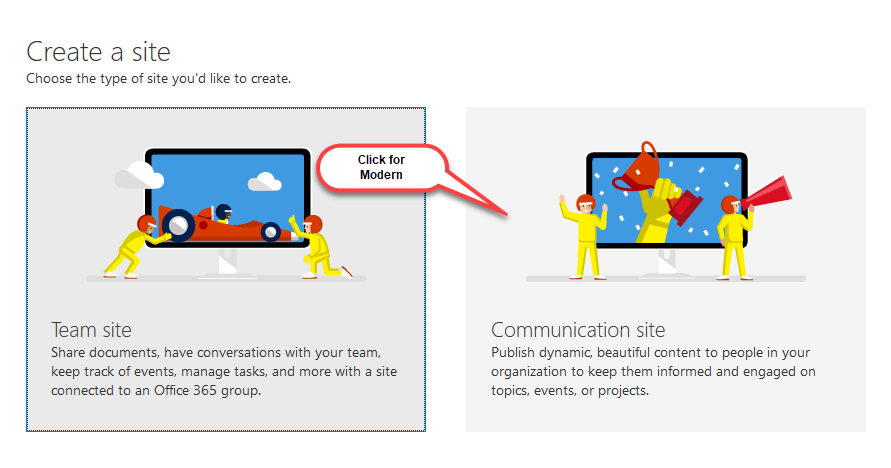 Note: Complete this step the day BEFORE the planned install - provision a modern site 24 hours in advance, due to office 365 potentially taking a long time to create it.