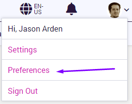 To Access the AppManager “Preferences” screen, on the top bar, click on your user profile dropdown menu, and select “Preferences.”