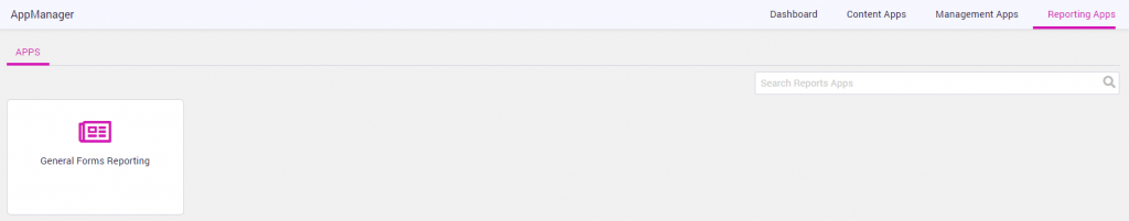 To view the available forms reporting apps, click on the Reporting Apps tab in AppManager.