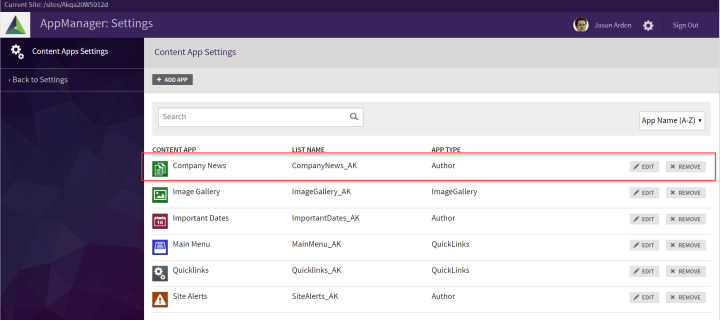 AppManager Content Apps can easily be created or modified within the AppManager based on an existing SharePoint list or by creating a new SharePoint list as the source for the Content App.