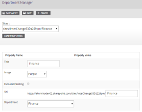 | Department Manager | Used to management the properties of departments (subsites) in the Digital Workplace such as their title, background color, mapping to AzureAD, etc.