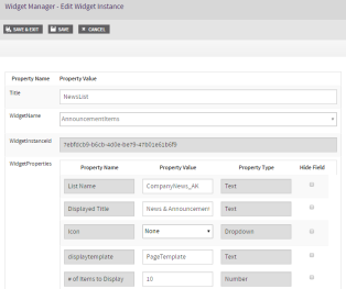 | Widget Manager | Used by developers to add new widget types and define their properties. Used by Designers to map new views (added in View Manager) as available views in their targeted widgets. Used by Admins and Business Users to create instances of the widgets to be added to the site, including setting their properties and views.