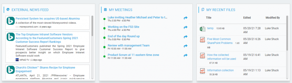 Displays the users personalized Dashboard page based on the users' configuration preferences of their selected widgets.