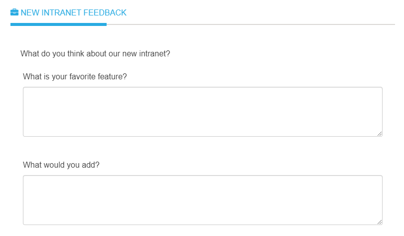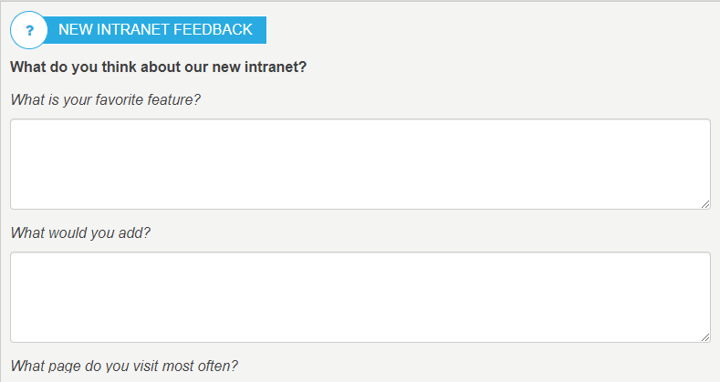 View Description: Displays the form a question mark next to the title, a bold header, and italicized questions with unlimited height.