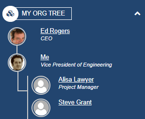 My Org TreeDisplays the organization hierarchy of the current user, displays who I work for and who reports to me. To learn more about the MyOrgTreeWidget, click here.