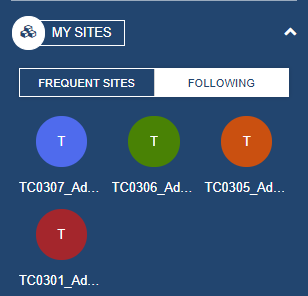 My SitesDisplays the SharePoint sites the current user has recently accessed, or sites being followed. To learn more about the MySitesWidget, click here.