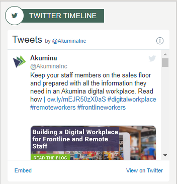 Displays a widget property specified public Twitter account on the site. To learn more about the TwitterTimelineWidget, click here.