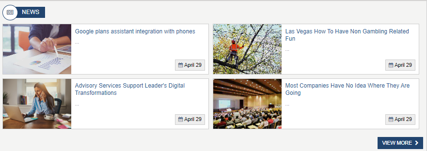 Department News List Widget (left column)The Department News List Widget displays the four (set on viewxml widget property) news articles from DeptNews_AK (set on widget property) based upon "Start Date" in descending order. Each list item contains an image, and Announcement Title of the current item. Clicking on the item will direct the user to the dynamic NewsDetail page, where the full article will be displayed. Click on "View All News", will direct the user to the NewsList page which contains a full list of all active news articles for the current sub site. To learn more about the DepartmentNewsListWidget, click here.