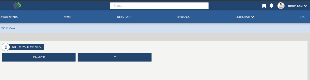 Department PageDisplays a permission filtered list of departments, that the logged in user has access to. The titles on the departments come from the Site Titles set in SharePoint. To learn more about the DepartmentListWidget, click here.