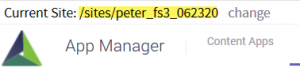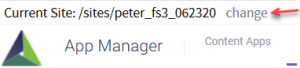 Once in the Akumina AppManager a user can look in the top left corner to see the current site/sub-site they are viewing apps for.