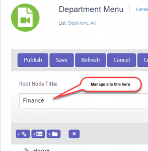 Departments – Department Listing with links to the Departments/Subsites, displays a filtered by permission list of sites the user has access too. Link titles are the site titles.