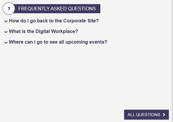 The FAQ Widget displays the full list of FAQ question/answers in the FAQ_AK list. To learn more about the FAQWidget, click here.