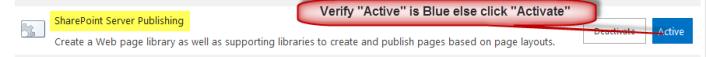Also in Site Collection Features, DEACTIVATE the Limited-access permissions lockdown (required for the DMS and DSL):