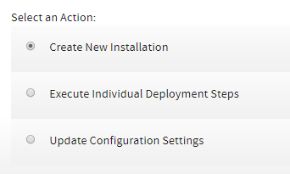 In this case we are deploying a new department sub-site so will select “Create New Installation”. The list of options available will be displayed and are broken down as follows: