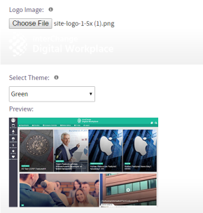 There are 9 themes included from which to choose. In addition, a custom theme can be added by a developer/designer. Themes can be updated at any time after the initial deployment using the “Update Configuration Settings” option in the Digital Workplace Foundation Site