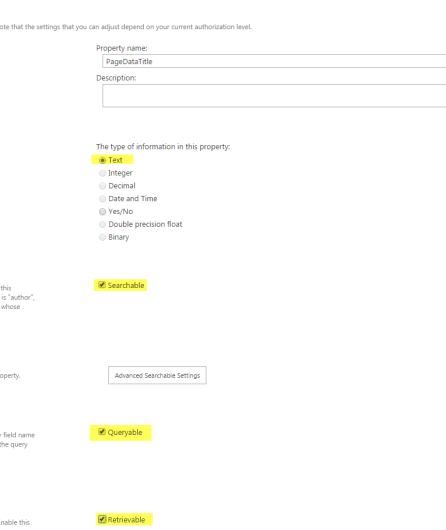 Ensure that the Required Crawled Properties exist in the Search SchemaThere are two crawled properties that need to exist for this step: ows_PageDataSiteId and ows_PageDataTitle. To ensure these exist: