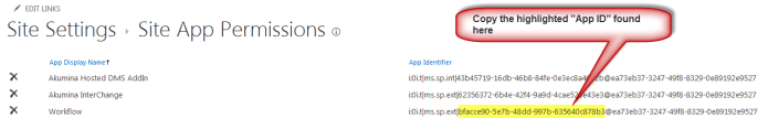 Find and SAVE the “App ID” for the Site Collections Workflow