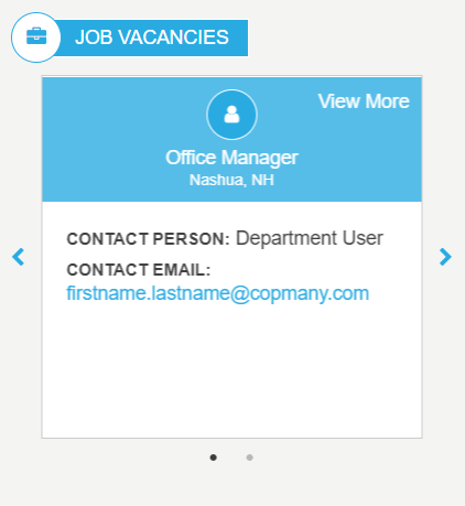 View Name: Job Vacancies Slider View Description: Displays job vacancies, complete with title and location in a card slider interface View Preview: