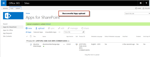 Once you receive and customize the Akumina AppManager App Package, it needs to be installed on your 365 SharePoint Site.