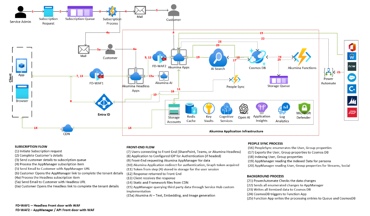 Architecture of Akumina Cloud Services Deployed on Microsoft Azure.
