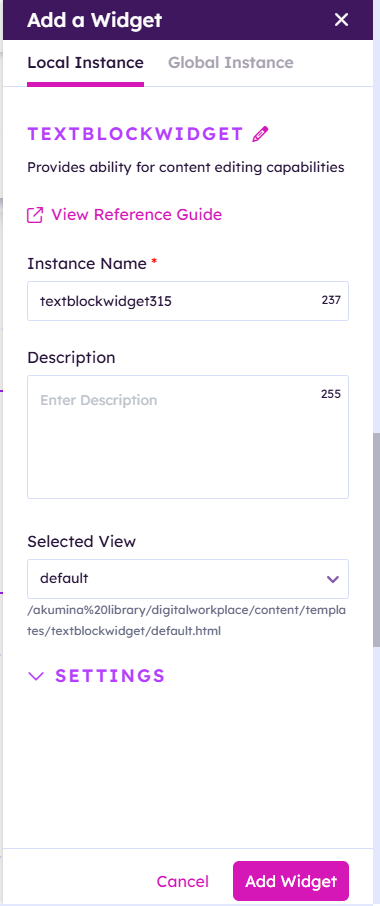 With every Akumina Widget you can view the Reference Guide related to the particular Widget.