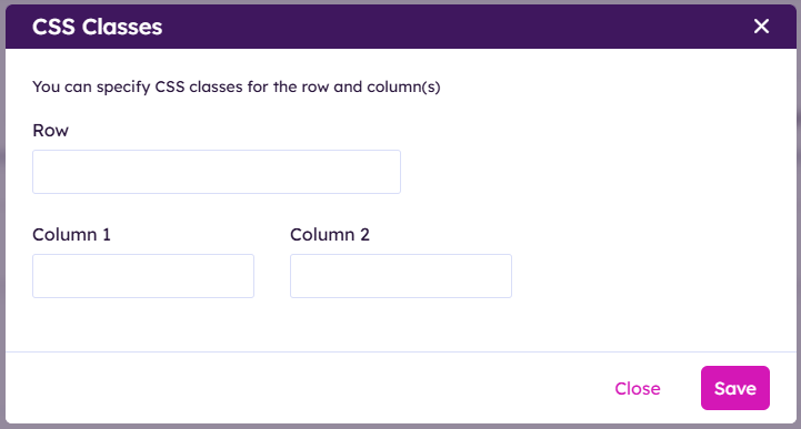 Clicking CSS Classes will allow us to refrence existing custom CSS classes to impact the row and or containers in the row
