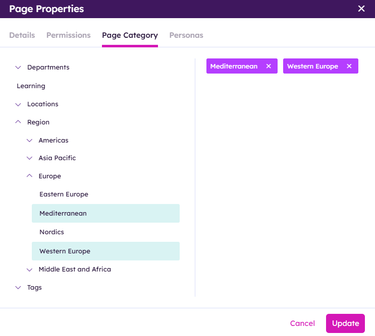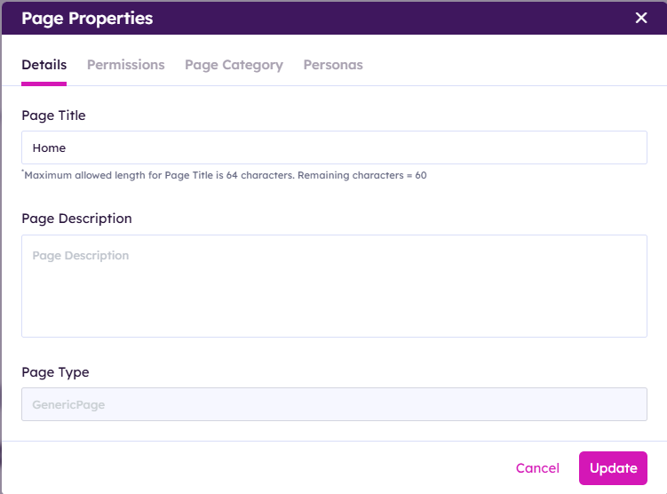 Assign applicable persona(s) that should be assigned to the page. By default the All persona will be assigned to the page. Click Update when finished.