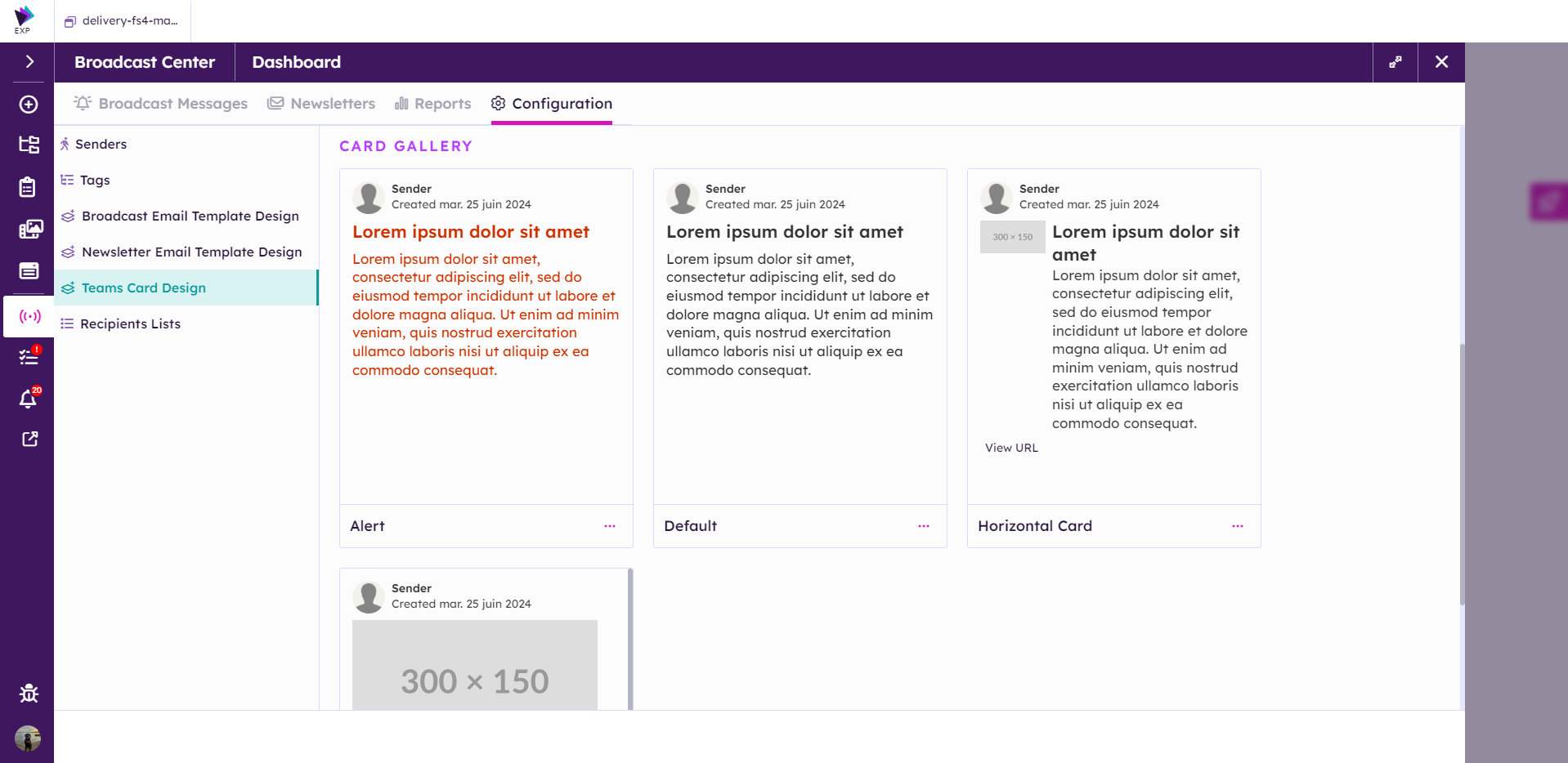 Similar to Broadcast and Newsletter emails, Teams messages have cards that can be configured in the Broadcast Center settings.