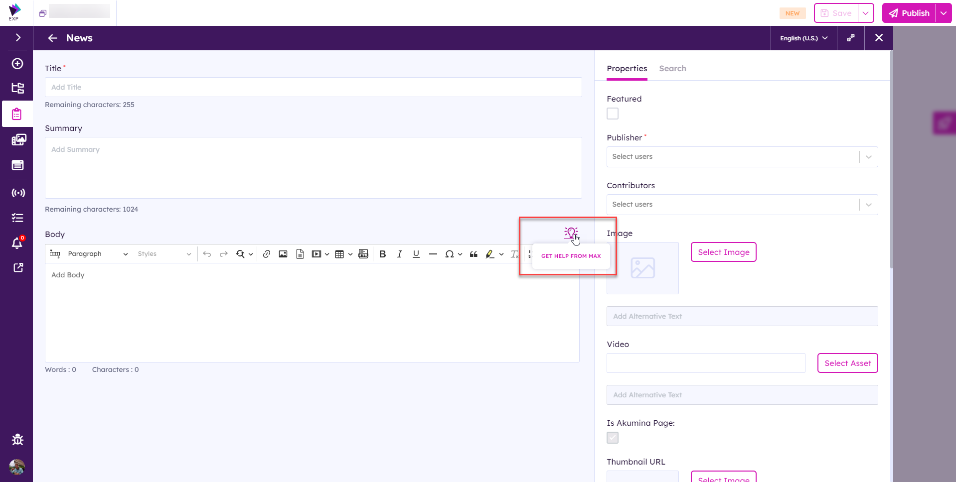 Max can be used for multiline rich text columns and can be accessed by clicking on the lightbulb icon at the top right of the field.
