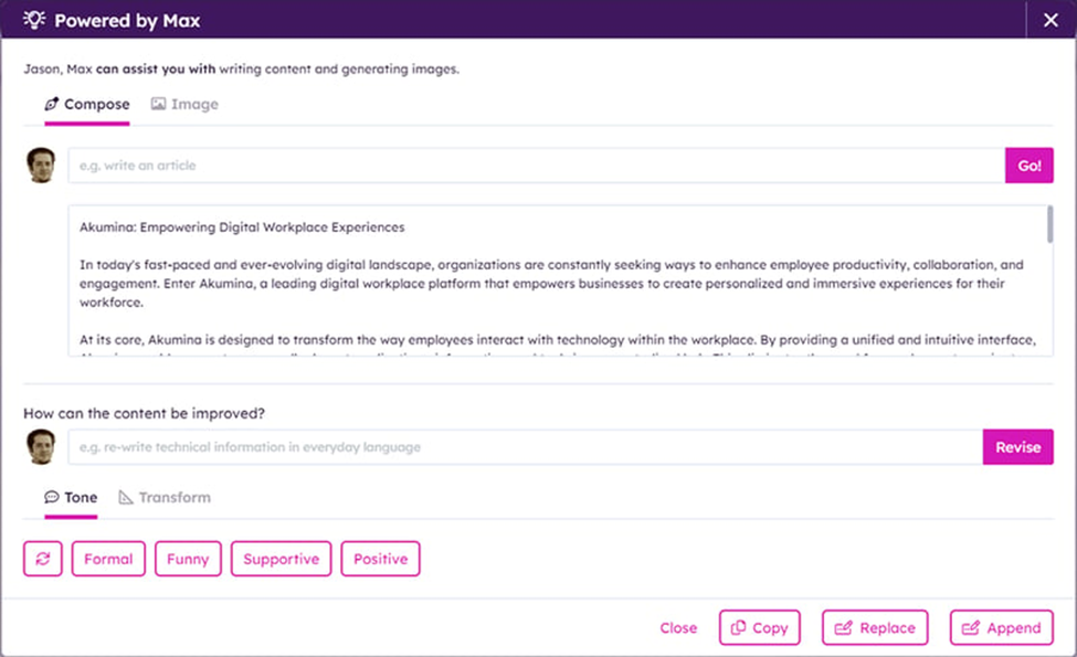 Using Max, you can generate or improve text content, or you can generate images.