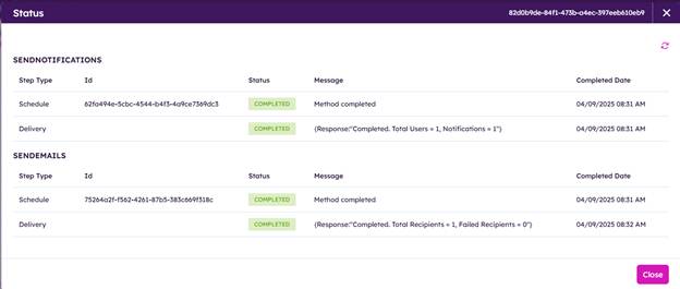 We have implemented a new UI to view the status of Broadcast Messages and Newsletters in the Broadcast Center.