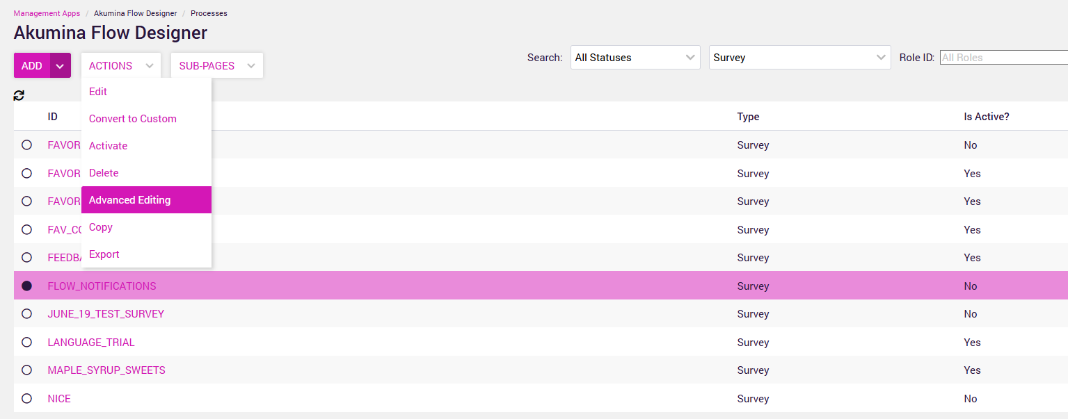*Note you can only modify a flow when is Active = No