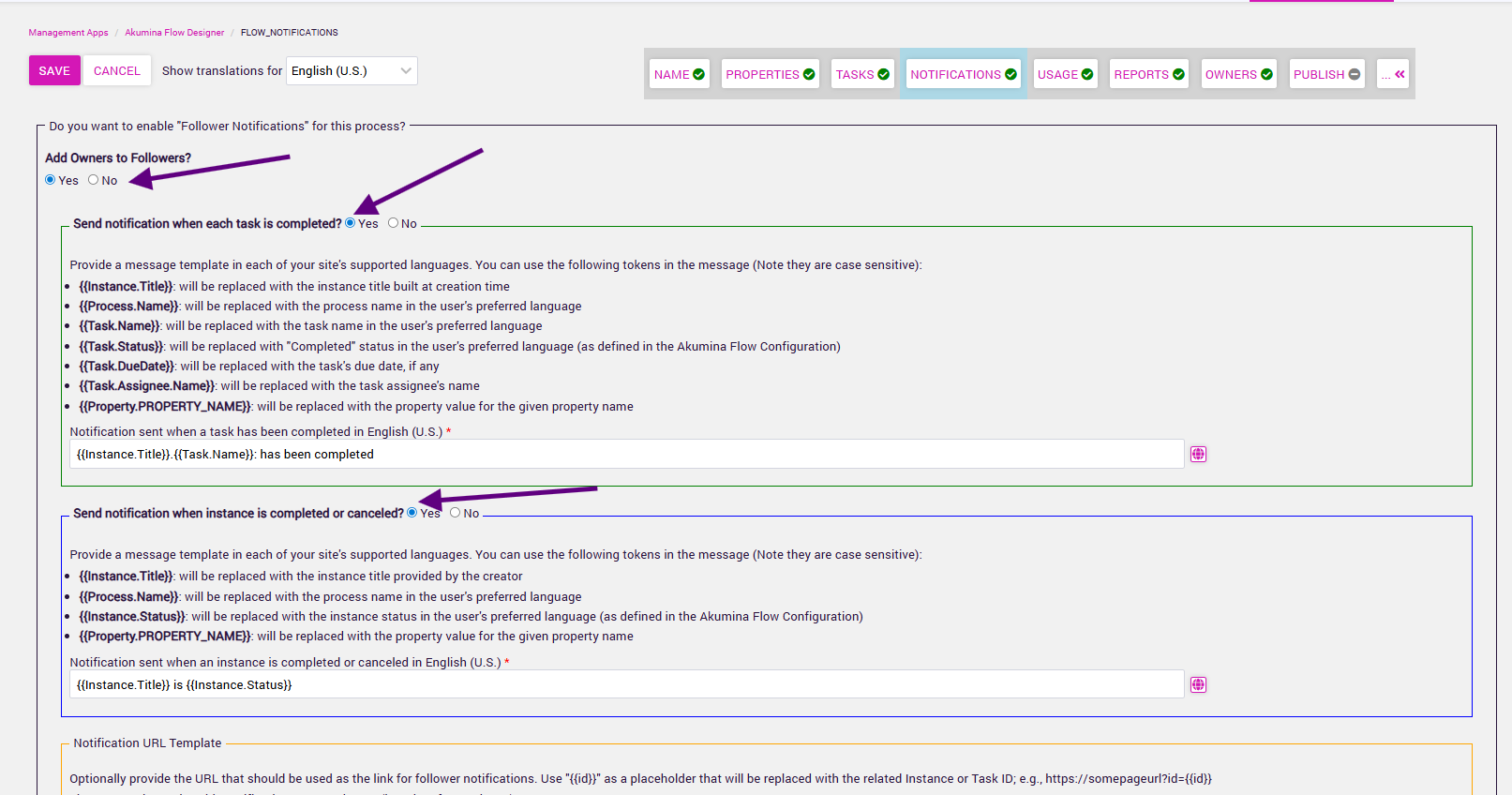 These need to be configured at the flow process in Advanced Editing