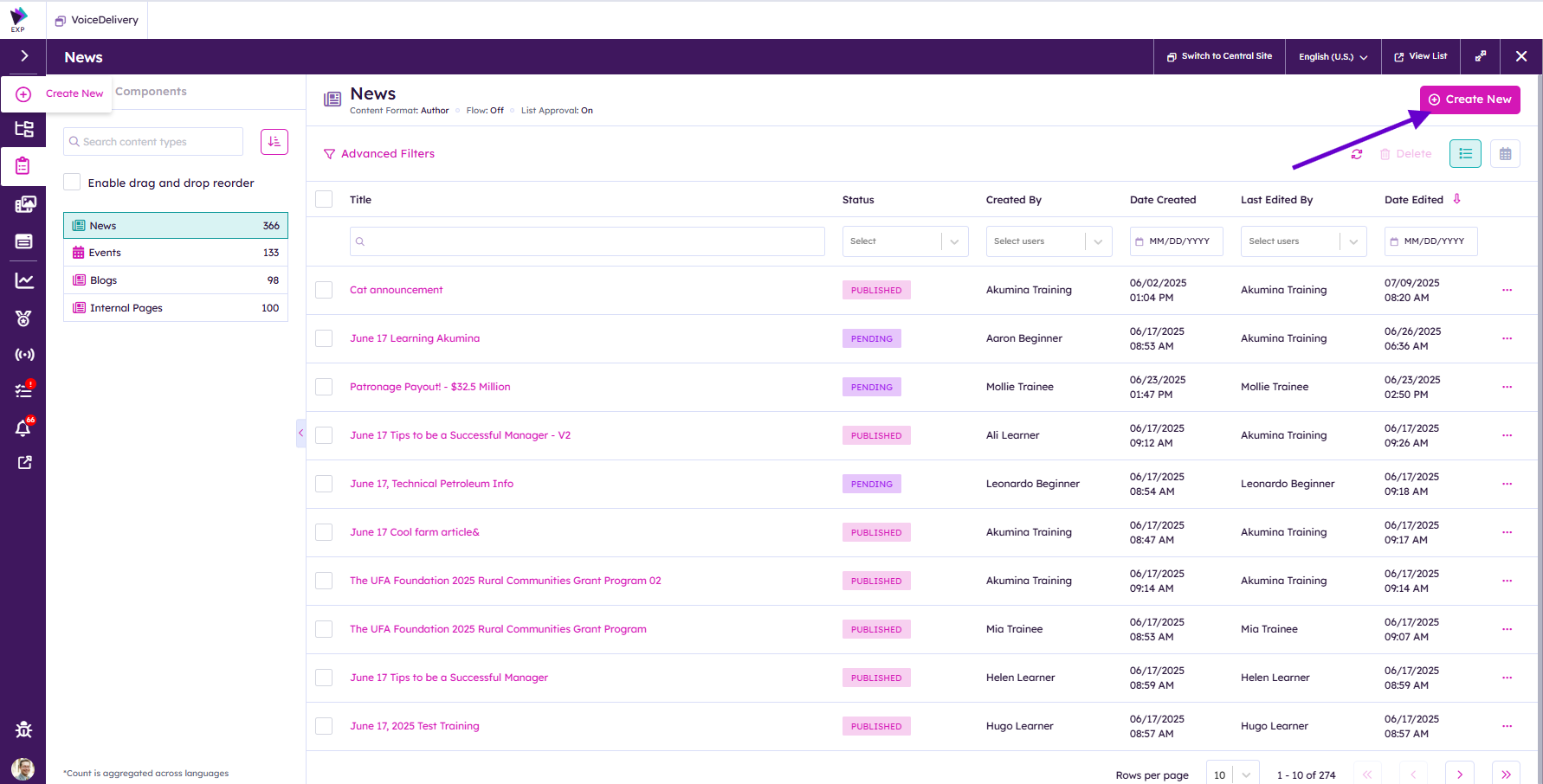 Click on Create New at the top right corner of the screen