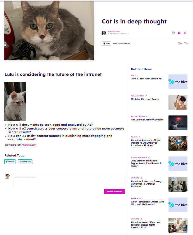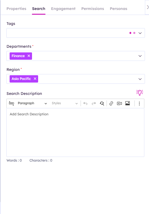 Use the search tab to setup your news article for search and promotion to people's expressed interests.