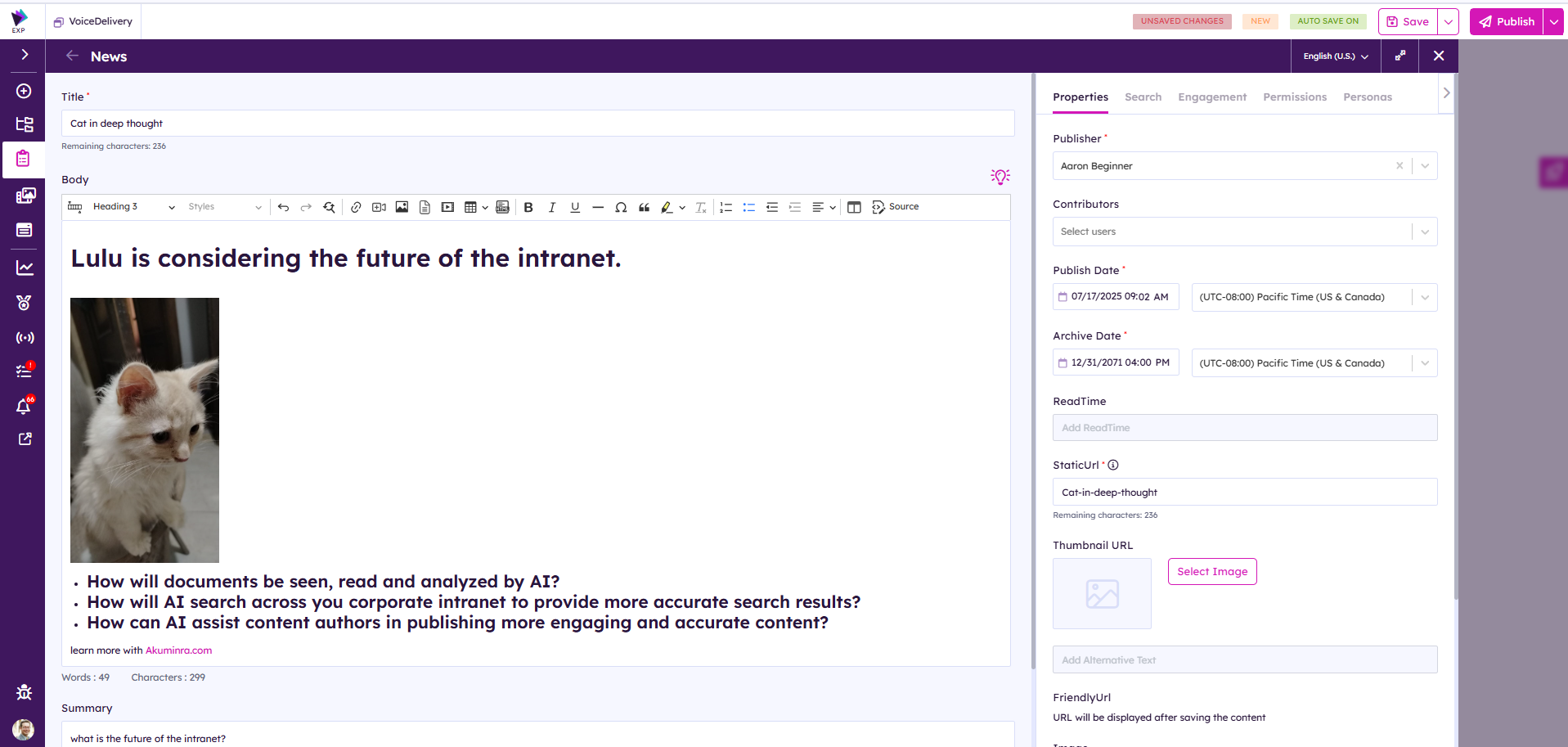 | Publish Date | Date and Time picker. This will be the day and time your item is released to the intranet. |