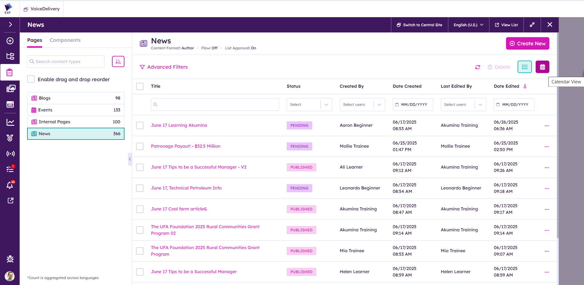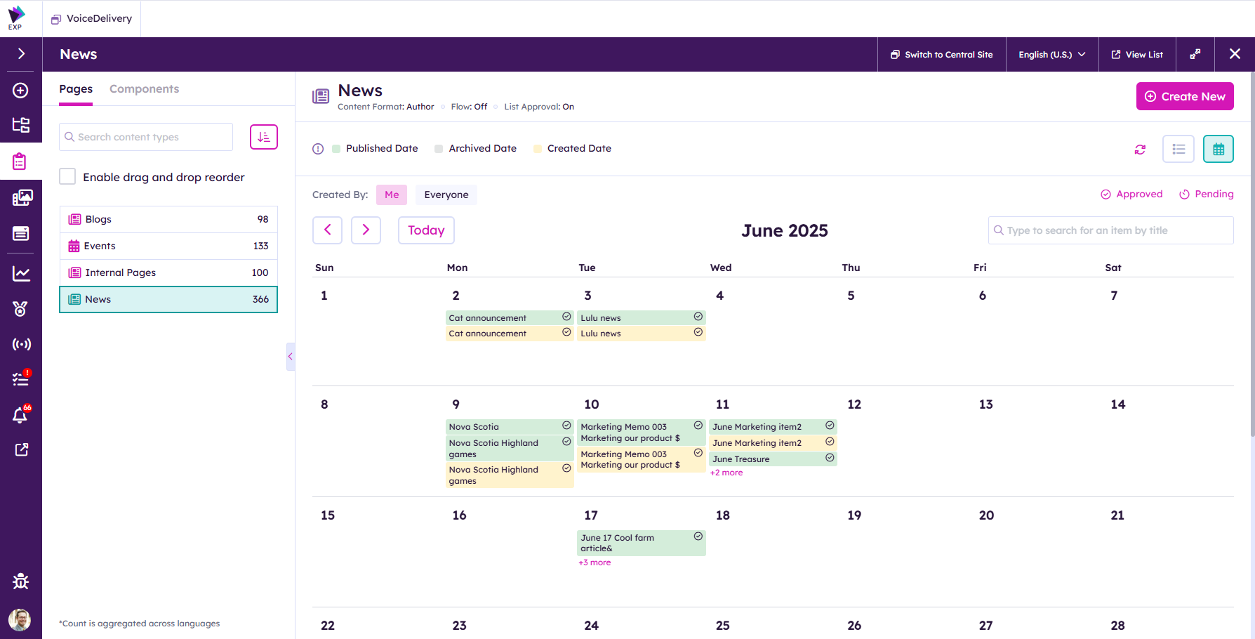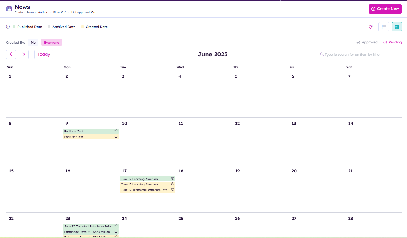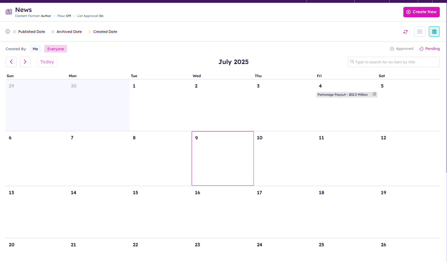 To see the Content Calendar go into your Content app of choice like News and click on the Calendar icon.![]()