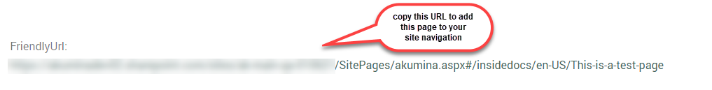 An existing HR site may have 100s or more interior content pages, each one with their own *.aspx page. But after reviewing these 100s of pages, what is usually required is one or two dynamic pages with an appropriate data structure or content type (set of SharePoint columns) to support the detail item needed to display on the page, along with additional static widgets. Please note the associated SharePoint list to support dynamic content, will need to have a FriendlyUrl column (calculated field). In the discussion below we will use the InternalPagesWidget (click here for more information) as a reference, which has an associated content type "AkuminaInternalPage", with a FriendlyUrl column.