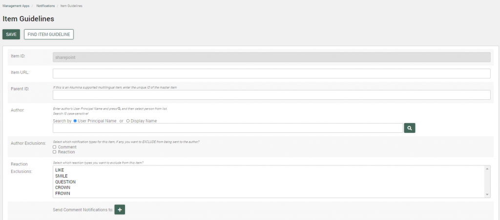 Item Guidelines can be used to review the social rules configuration setup for a unique item id. Social rules are configured within a Content App. Click here for details on configuring the social rules of an activity stream with a Content App.