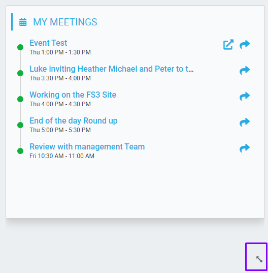 To change the widget size on the page, click on the resize arrow on the bottom right corner of the widget and drag to resize the widget to a smaller or larger size.