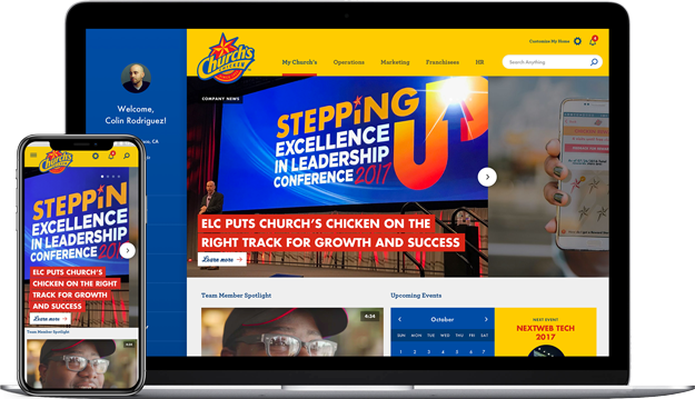 For Church's Chicken, bright colors and a bold font is a huge part of their memorable brand. It's also an important part of their organization's culture. With franchisees, restaurant staff, and traditional knowledge workers all over the world, the intranet plays a critical role in unifying all Church's employees under a single culture.